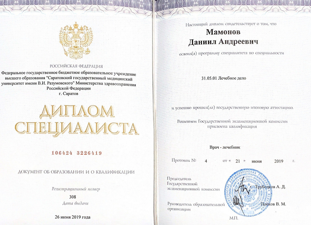 Я обращался к специалисту на консультацию. На приеме врач провел полный визуальный осмотр и смог поставить диагноз. Также расспрашивал меня о симптомах и жалобах. В качестве лечения назначил необходимые медикаменты. Дозировку и схему приема препаратов расписал и отдал на руки. Курс был рассчитан примерно на 5 дней. Я уже закончил следовать рекомендациям и могу сказать, что мне они помогли. По моему мнению, Даниил Андреевич хороший доктор, он к себе располагает и вызывает доверие. Сразу видно, что это профессионал своего дела, все понятно и доступно объяснил. Повторный прием мне не требуется, но при необходимости в дальнейшем буду обращаться именно к Даниилу Андреевичу.